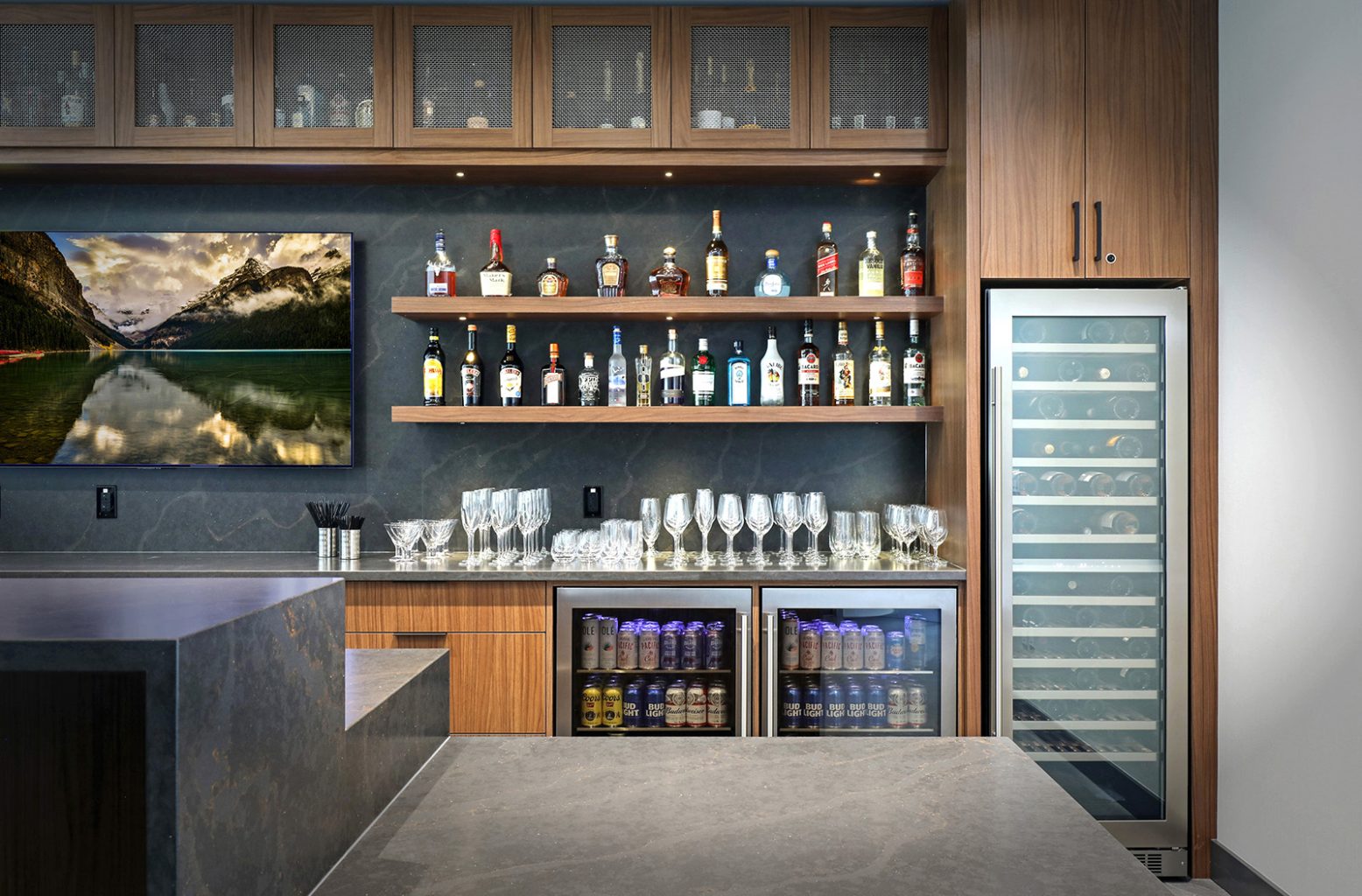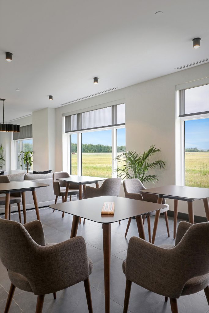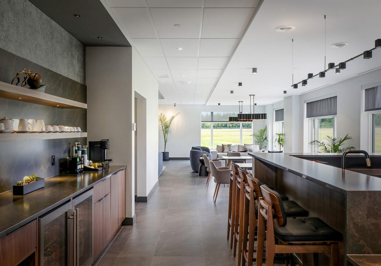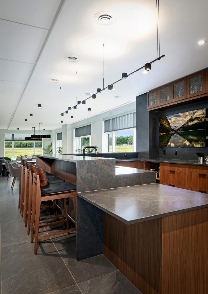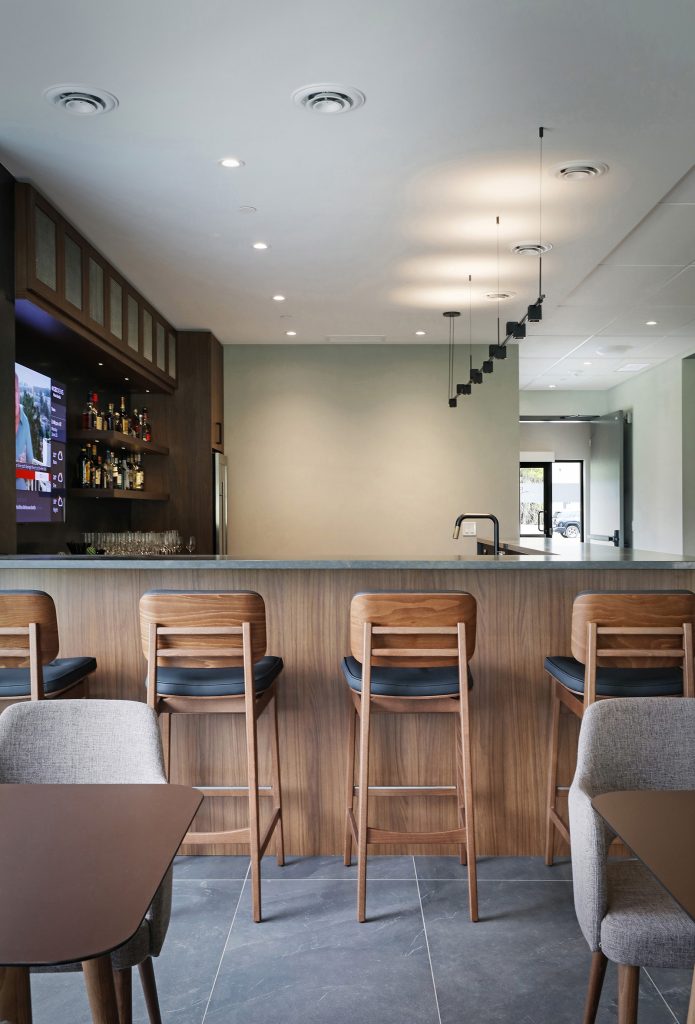 Lounge, bar, office and meeting space as part of a private airport hangar. Waiting never felt so good!